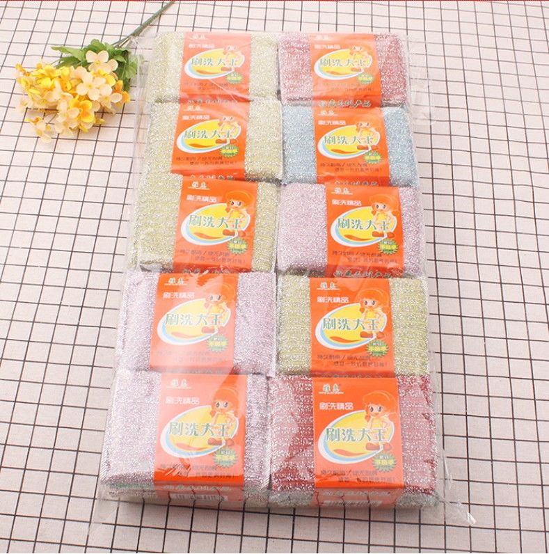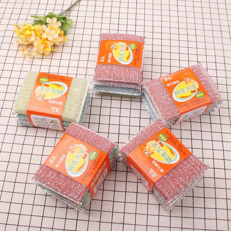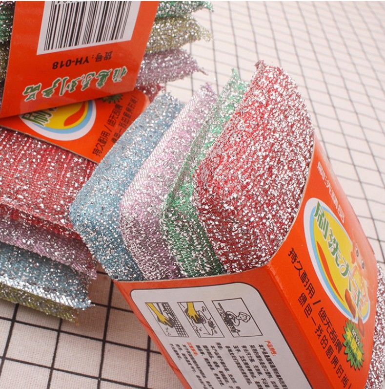 > 03295厨房清洁洗碗刷锅4片一包彩色金丝海绵擦洗碗巾百洁布抹布