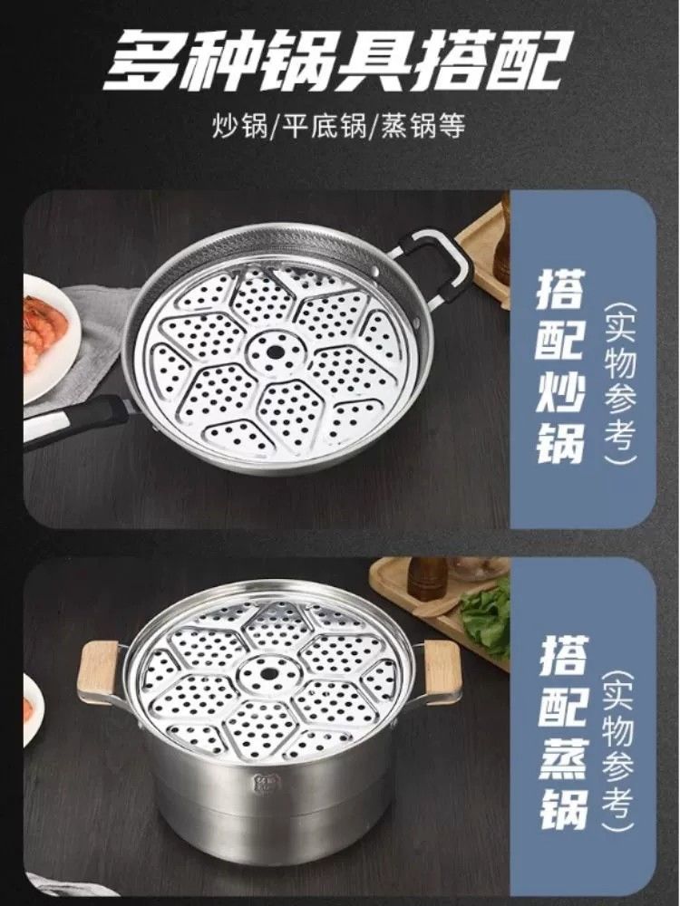 > 00353蒸笼加厚不锈钢32蒸屉蒸格蒸层屉子电锅炒锅蒸片圆形