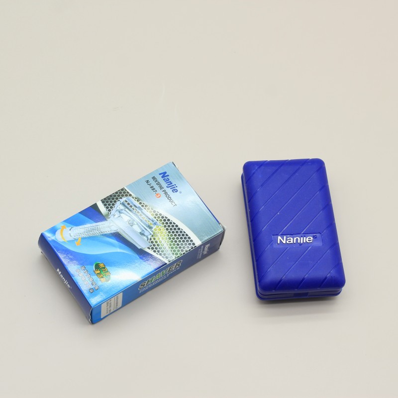 > 997-3手动刮胡刀老式剃须刀架不锈钢双面刀片剃须刀盒装
