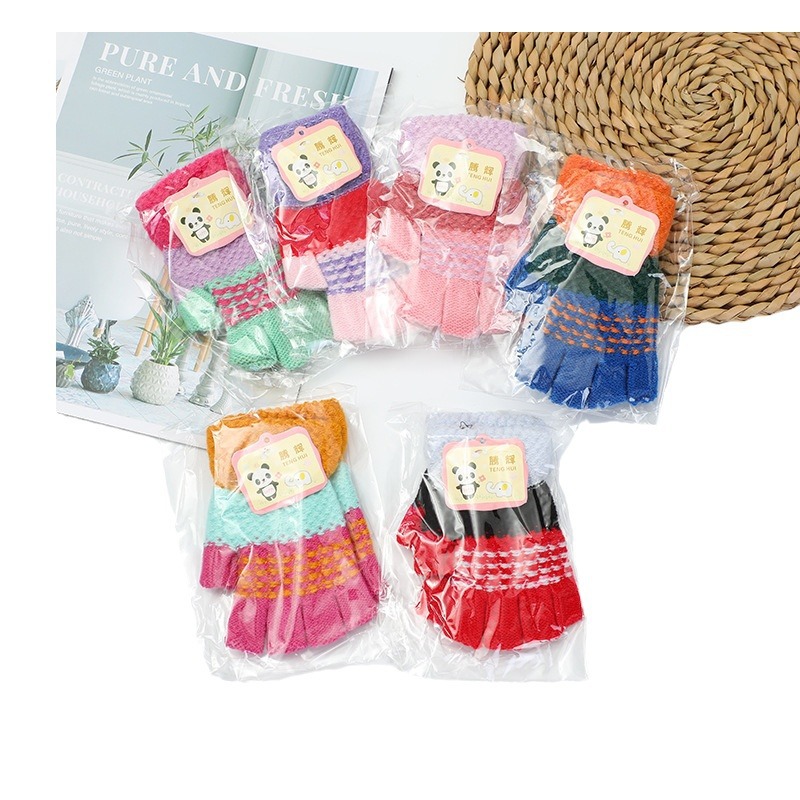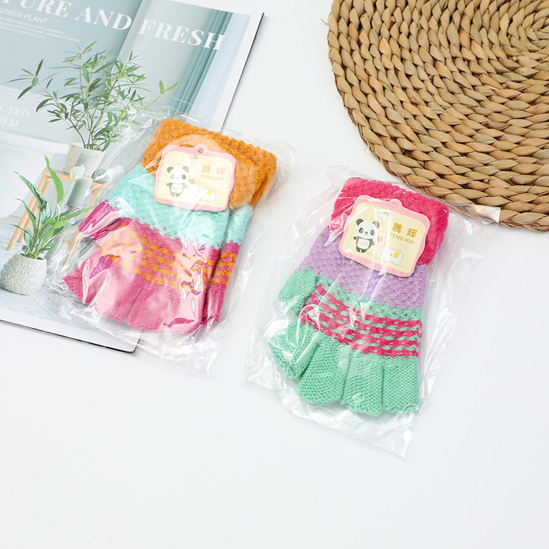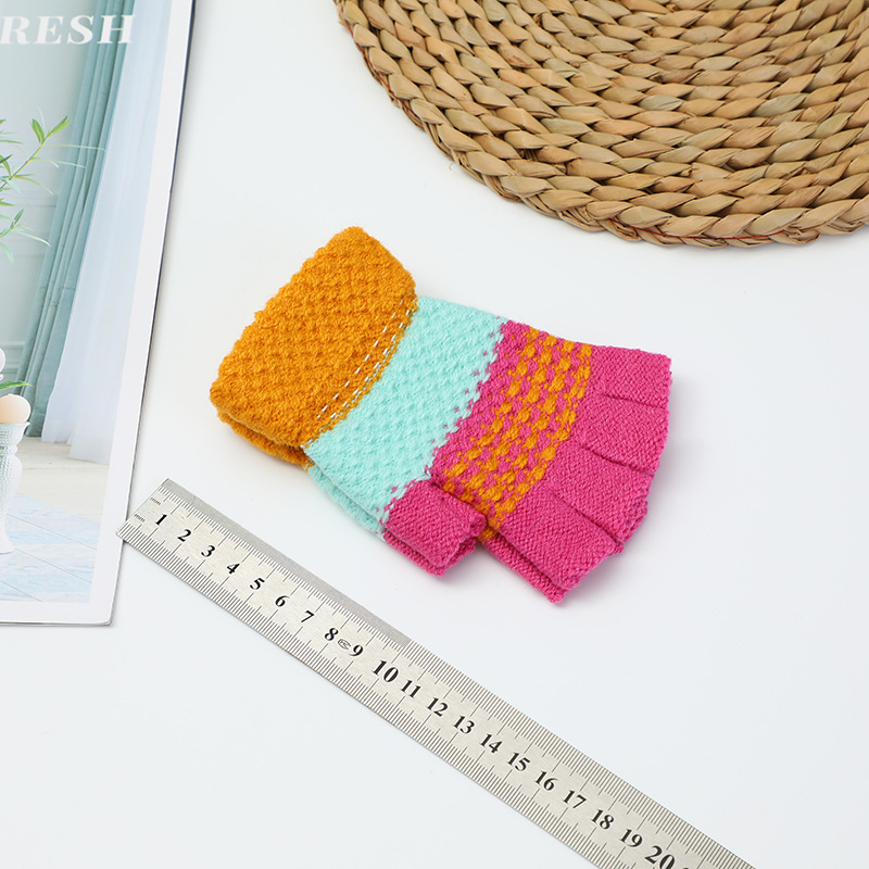 > 男女生大中童半指手套 秋冬季露指保暖小学生毛线针织手套 5元