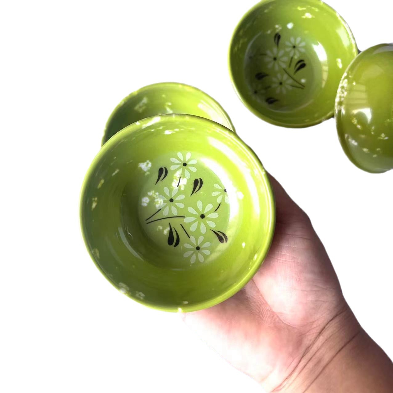 > 绿色白菊密胺碗 美耐皿碗 地摊 米饭碗 汤碗 稀饭碗 塑料碗