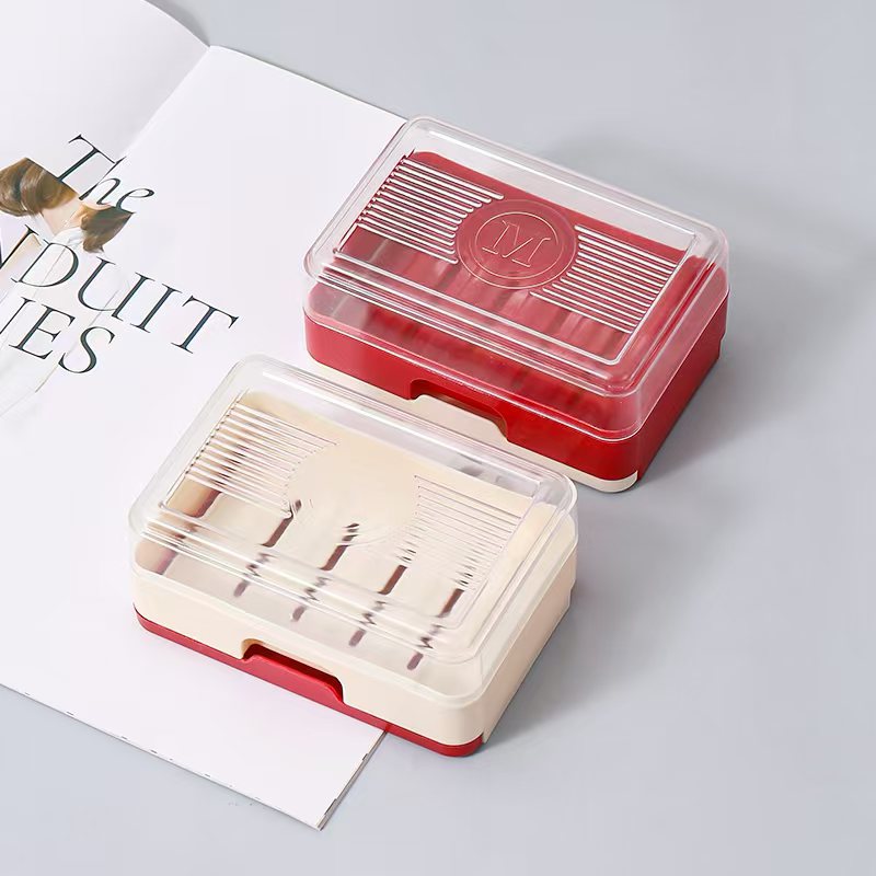 > 双层带盖抽屉式沥水肥皂盒免打孔塑料香皂盒浴室卫生间洗衣皂托