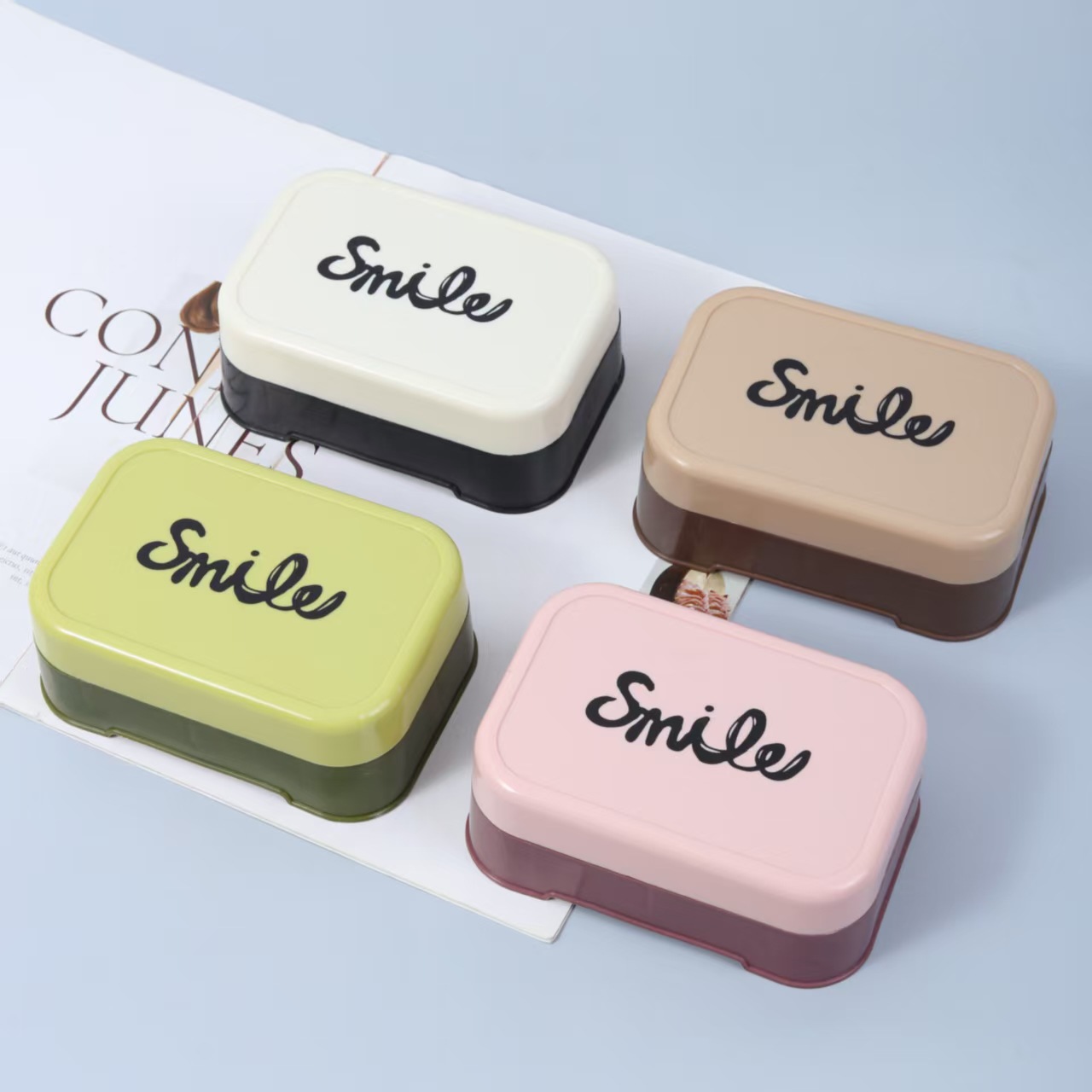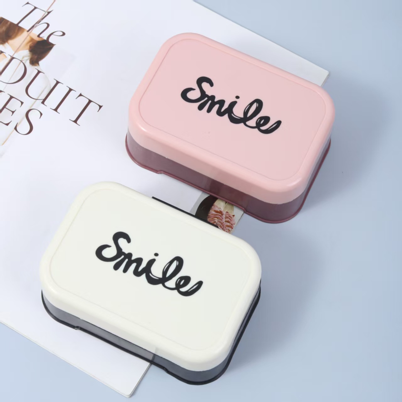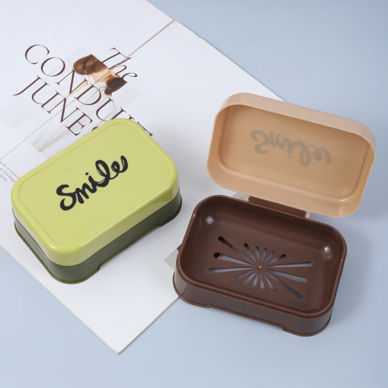 > 沥水翻盖肥皂盒家用浴室香皂盒洗衣皂盒塑料免打孔带盖手工皂托