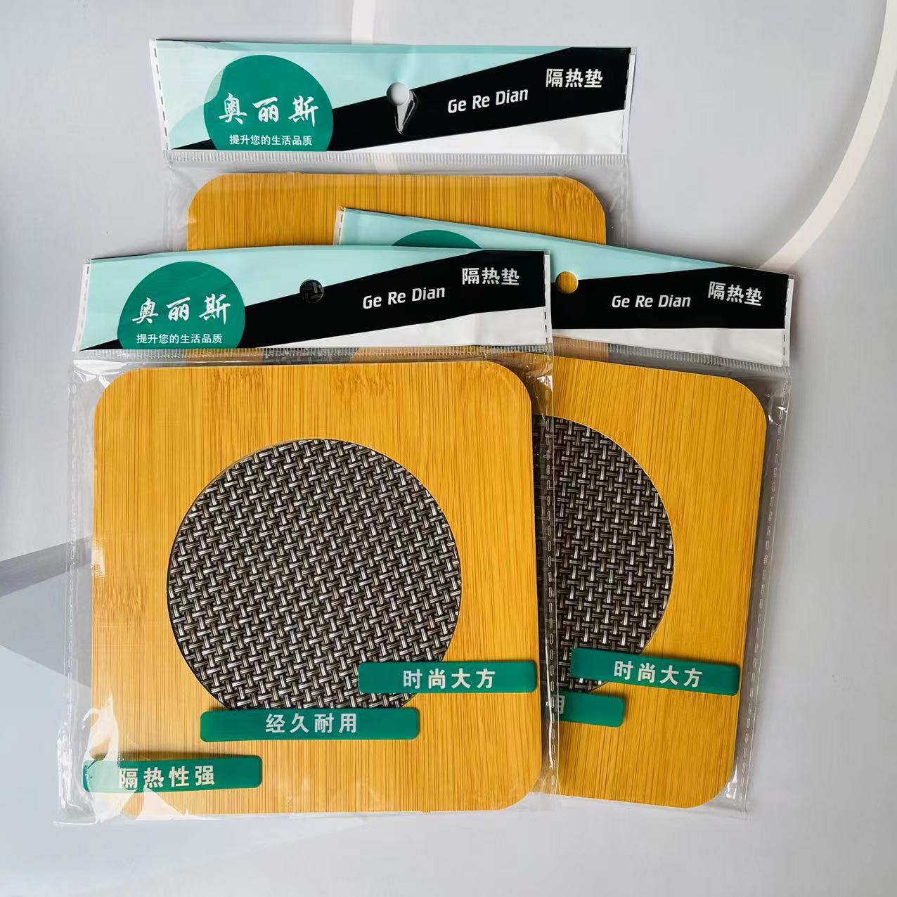 > 方形网片隔热垫竹制家用隔热垫印花防热垫餐垫砂锅垫碗垫