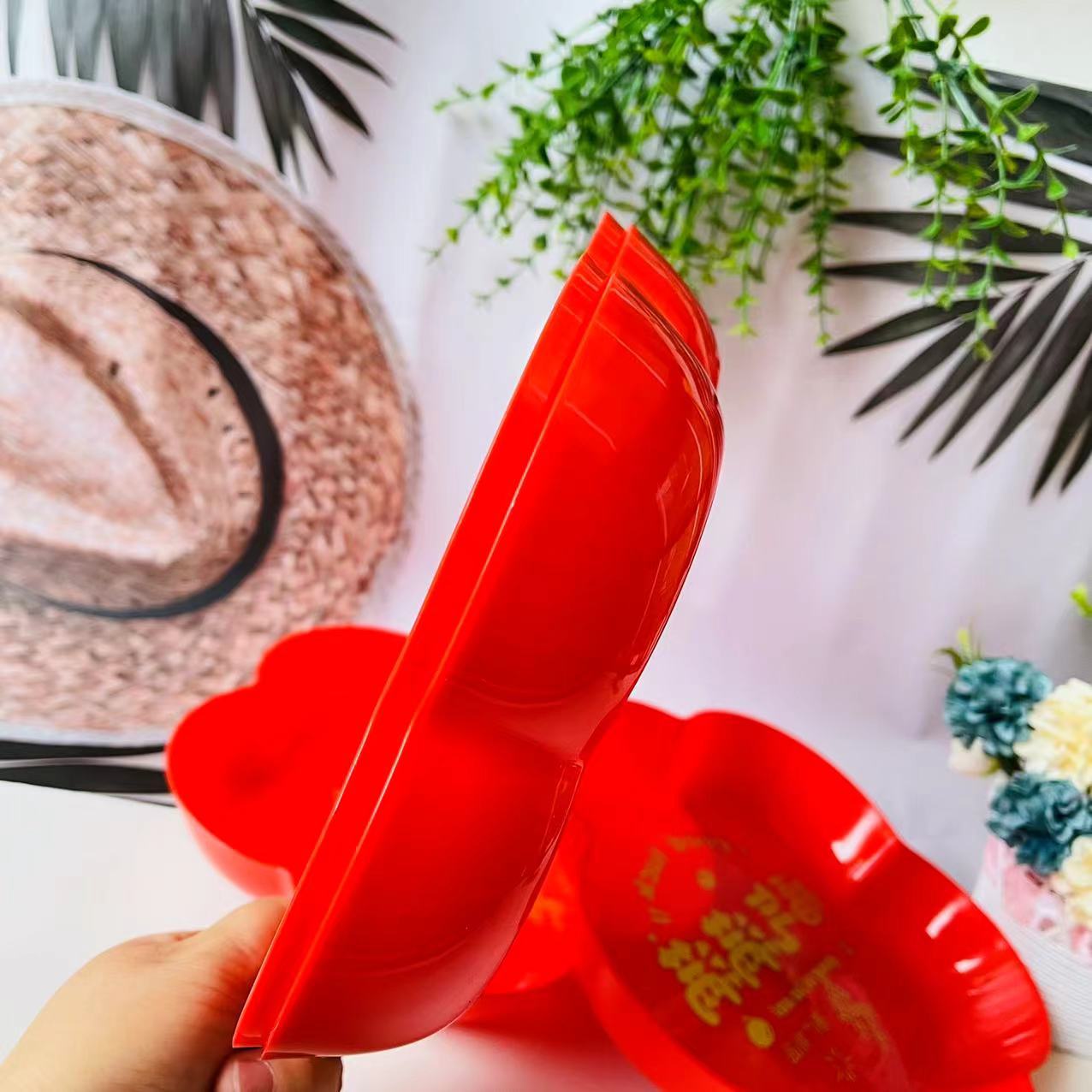 > 1126果盘新年乔迁结婚水果盘红色果盘红色零食盘1元2元批发